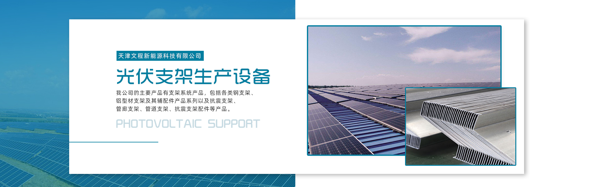 關(guān)于我們天津文程新能源科技有限公司成立于2021年,是專注于集中式、分布式、漁光互補(bǔ)和農(nóng)光互補(bǔ)等清潔能源發(fā)電的綜合性企業(yè) 公司是集設(shè)計(jì)、研發(fā)、生產(chǎn)、制造為一體的綜合型企業(yè)。公司占地面積20000平方米,注冊(cè)資金5000萬元整。公司坐落于華北鋼鐵重鎮(zhèn)--大邱莊,距天津市區(qū)50公里、鄰104和205國道及京滬高速,交通十分便捷。 本公司擁有三個(gè)生產(chǎn)車間,其中兩個(gè)冷彎型鋼車間,一個(gè)鋅鋁鎂型鋼車間,擁有自動(dòng)冷彎成型機(jī)10條,自動(dòng)數(shù)控沖孔機(jī)10條以及焊接加工等設(shè)備。主要生產(chǎn)產(chǎn)品有:太陽能光伏支架、各種規(guī)格的C/Z/U型鋼、抗震支架、管廊支架及整套配件等。